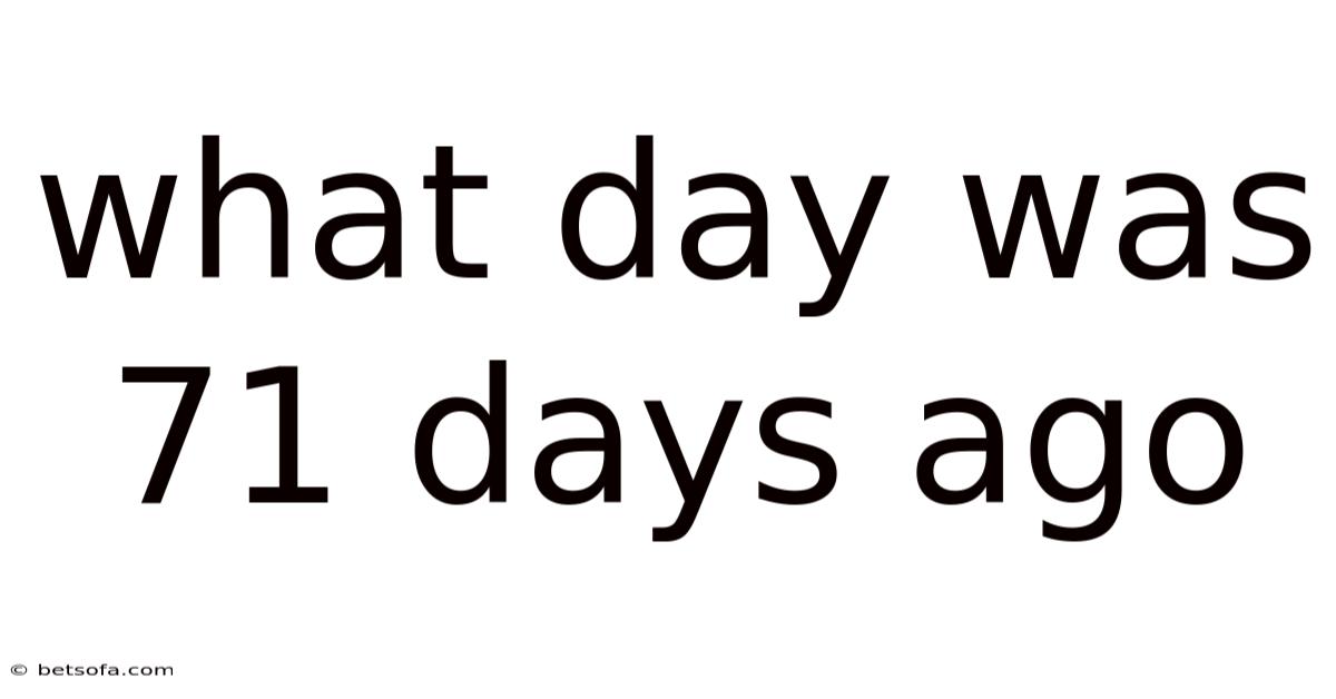 The term “71 days ago” refers to a specific point in time that is exactly 71 days before the current date. On top of that, to determine this, one must account for the exact number of days in each month, leap years, and the starting point of the calculation. As an example, if today is October 10, 2023, subtracting 71 days would land on July 10, 2023. That said, this calculation is not always straightforward due to variations in month lengths and leap years. The phrase itself is a precise temporal reference, and its accuracy depends on the context in which it is used. Whether you’re tracking a project deadline, remembering a personal milestone, or analyzing historical data, knowing what day was 71 days ago can provide clarity and structure. This article will break down the mechanics of this calculation, its real-world applications, and the common pitfalls that people encounter when trying to determine such dates.
