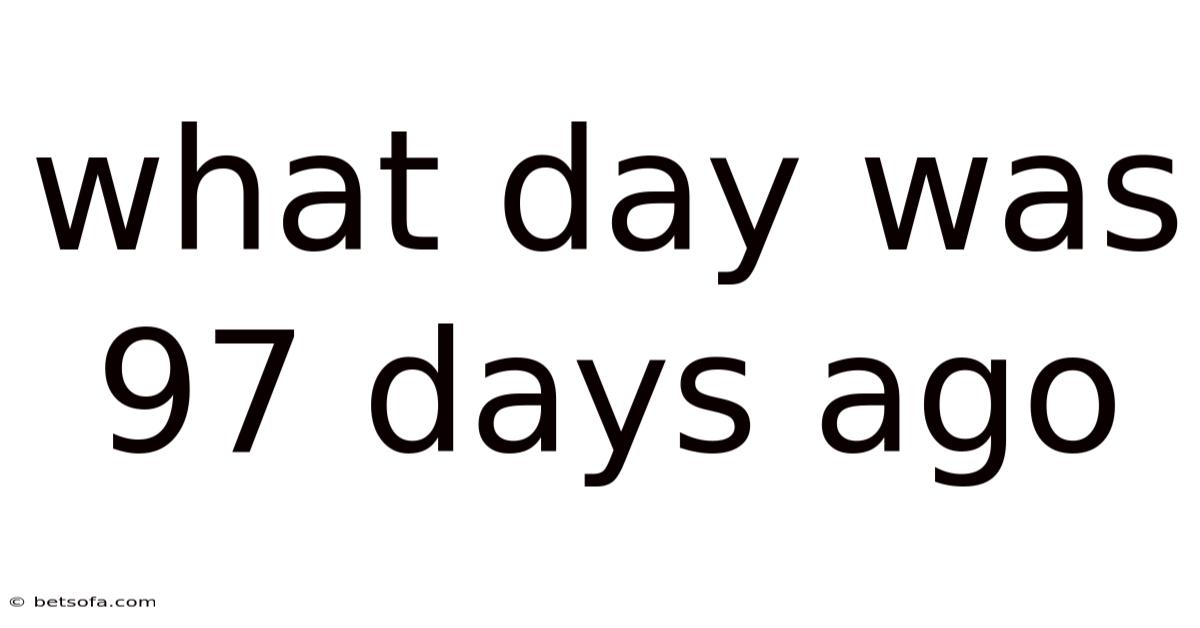 At the end of the day, the seemingly simple act of calculating the day 97 days ago underscores the fundamental role of time in our lives. Which means it's a testament to the power of mathematics to tap into insights into the past, and a reminder of the importance of accuracy in our pursuit of knowledge and understanding. This skill isn't just about numbers; it’s about understanding the flow of time and its influence on our choices and actions Not complicated — just consistent. Worth knowing..