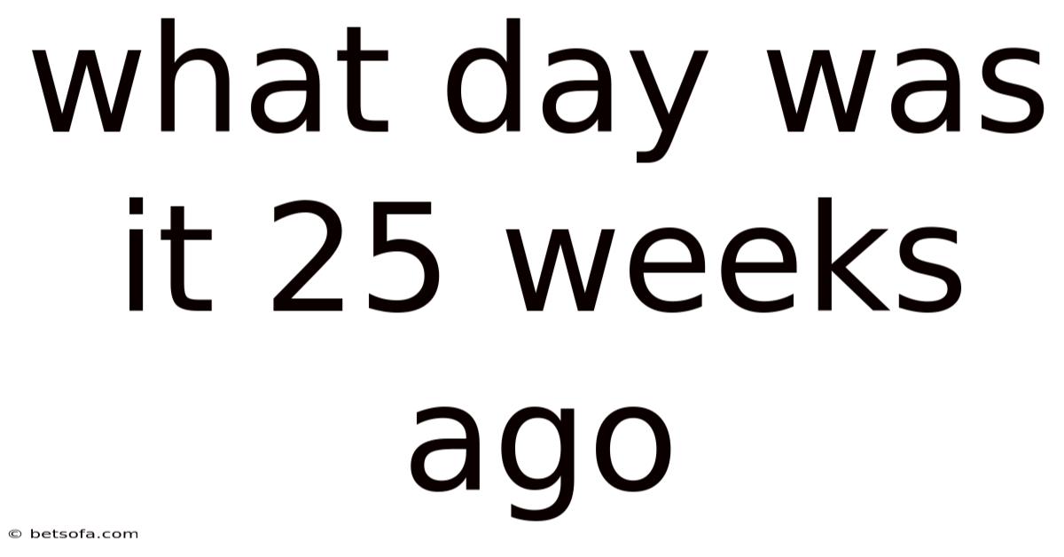 Ever foundyourself staring at a calendar and wondering, “what day was it 25 weeks ago?” Whether you’re trying to recall a past event, back‑track a deadline, or simply satisfy a curiosity about time, the answer is easier to uncover than you might think. In this guide we’ll demystify the math behind the question, walk you through a reliable step‑by‑step method, and show you how to apply it to real‑world scenarios. By the end, you’ll not only know how to calculate the exact day but also feel confident tackling any similar time‑travel puzzle on your own That's the whole idea..