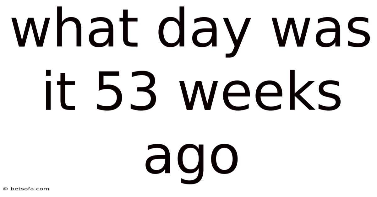 Have you ever tried to recall an event from "about a year ago," only to realize that 52 weeks isn't quite a full year? The question "What day was it 53 weeks ago?" is more than a simple calendar puzzle—it's a practical exercise in understanding how our timekeeping systems work. Whether you're verifying project timelines, calculating billing cycles, or just satisfying a historical curiosity, knowing how to accurately determine a date 53 weeks in the past is a valuable skill. This guide will break down the logic, provide clear methods, and highlight common pitfalls, ensuring you can confidently answer this question for any starting date.