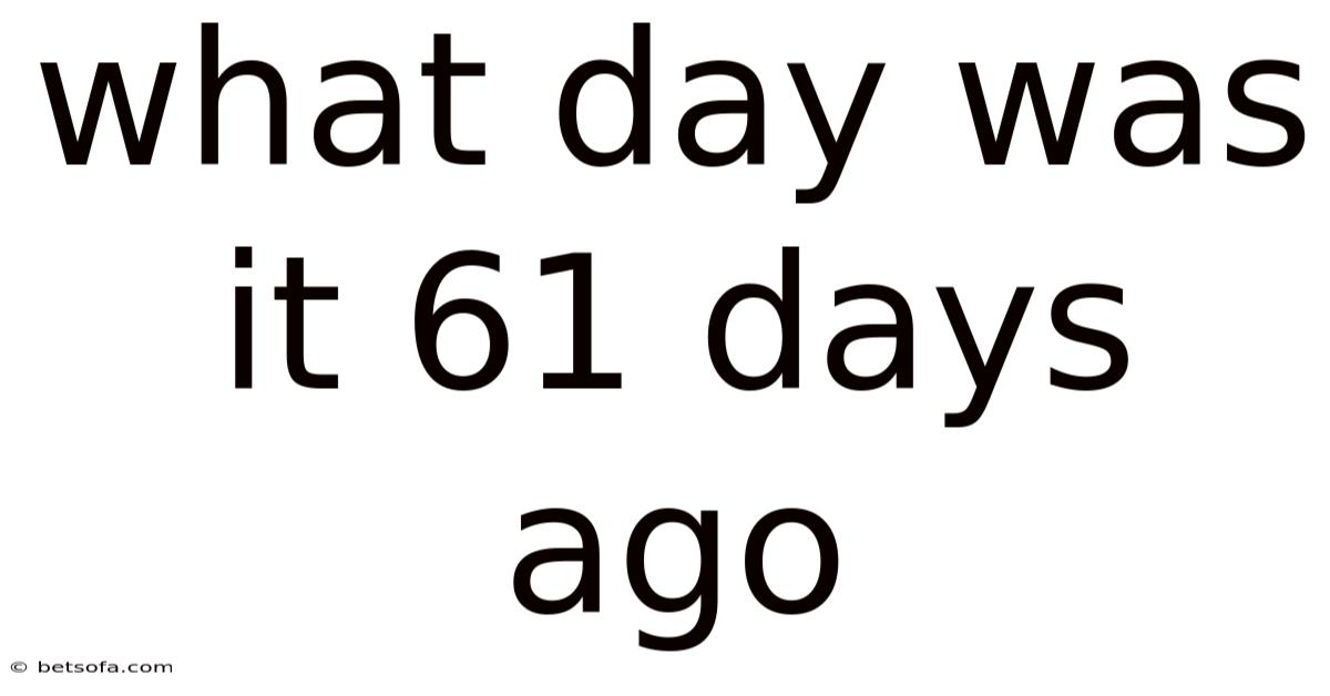 Have you ever glanced at a calendar, counted a handful of weeks, and wondered “What day was it 61 days ago?That's why ” Whether you’re trying to locate a historic event, settle a personal dispute, or simply satisfy a curious mind, figuring out a date that far back can feel like a small puzzle. In this article we will walk you through the exact steps to determine the day of the week that fell 61 days before today, explain the underlying calendar logic, and give you handy tips you can apply to any “X days ago” question. By the end, you’ll not only have the answer for today’s date but also a reliable mental‑math toolkit for future date‑calculations.