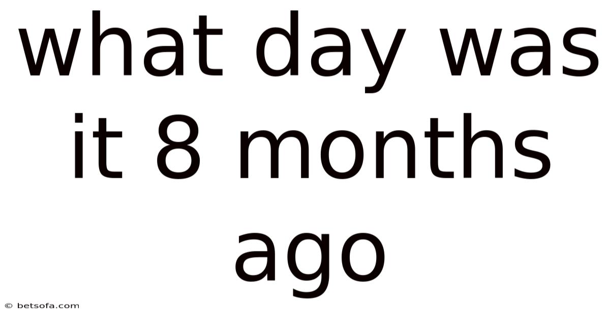Have you ever needed to know what day of the week fell exactly eight months before today? Whether you’re filling out a form, planning an anniversary, or simply satisfying curiosity, being able to pinpoint that date quickly is a handy skill. The phrase “what day was it 8 months ago” refers to the calendar day that occurred eight full months prior to the current date, and determining it involves understanding how months vary in length and how the week cycles. This article walks you through the concept, provides a clear method for calculating the answer, offers real‑world illustrations, explores the underlying theory, highlights common pitfalls, and answers frequently asked questions. By the end, you’ll be able to figure out the day of week for any “X months ago” query with confidence.