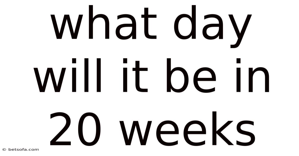 The short version: determining what day it will be in 20 weeks is straightforward: it will be the same day of the week as today. This is because 20 weeks equals 140 days, which is exactly 20 cycles of 7 days. While the date and month will change, the rhythm of the week remains constant. This principle is rooted in the structure of our calendar and the cyclical nature of the days of the week. Whether you're planning an event, setting a reminder, or just curious, you can now confidently answer the question: what day will it be in 20 weeks?