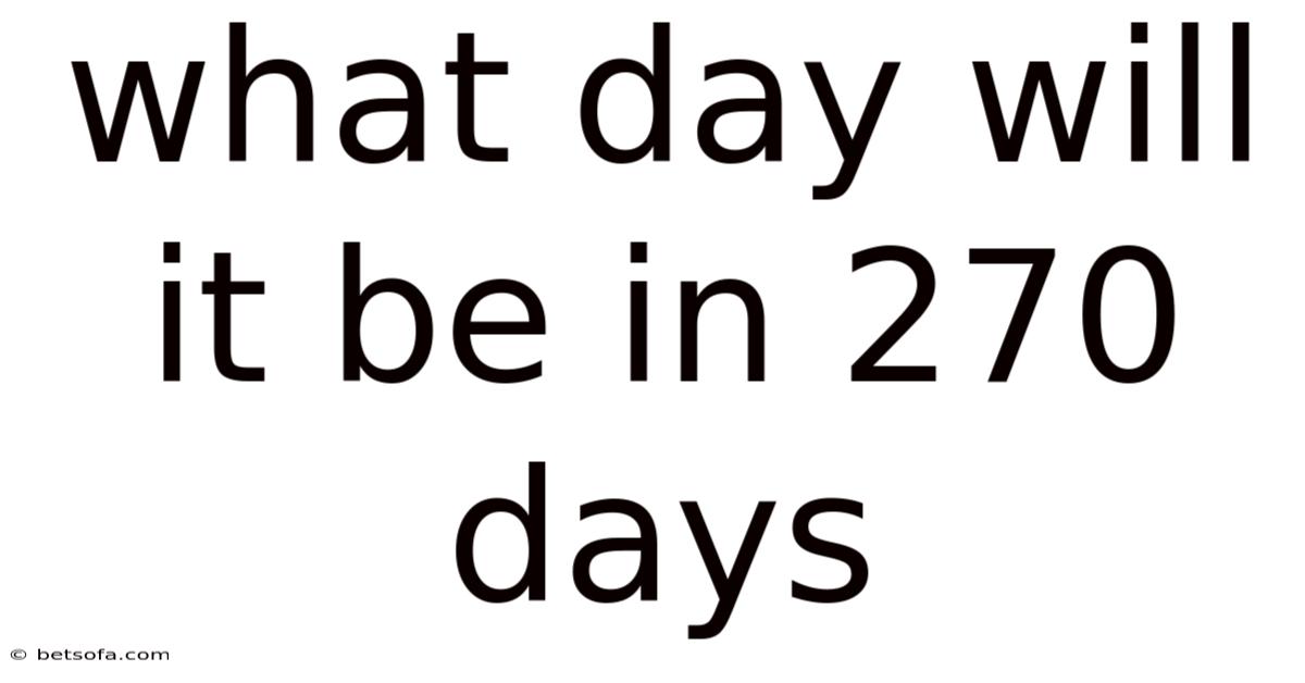 This article serves as a complete, step-by-step guide to answering what day will it be in 270 days for any starting point. Day to day, rather than offering a one-size-fits-all answer, we will explore the mathematical principles behind calendar calculations, break down the exact method you can use manually or digitally, and highlight real-world applications. By the end, you will not only know how to find the correct weekday but also understand why the calculation works, how to avoid common pitfalls, and how to apply this knowledge confidently across different scenarios Not complicated — just consistent..