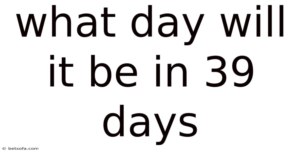 Have you ever found yourself wondering, "What day will it be in 39 days?" Whether you're planning an event, counting down to a special occasion, or simply curious about the calendar, calculating future dates is a useful skill that everyone should master. This article will provide you with a complete understanding of how to determine what day of the week it will be 39 days from any given starting point. In real terms, we will explore the methodology behind date calculation, practical examples, common pitfalls to avoid, and much more. By the end of this guide, you'll have the confidence to calculate any future date with ease, regardless of whether you're starting from a Monday, a Friday, or any other day of the week Small thing, real impact..