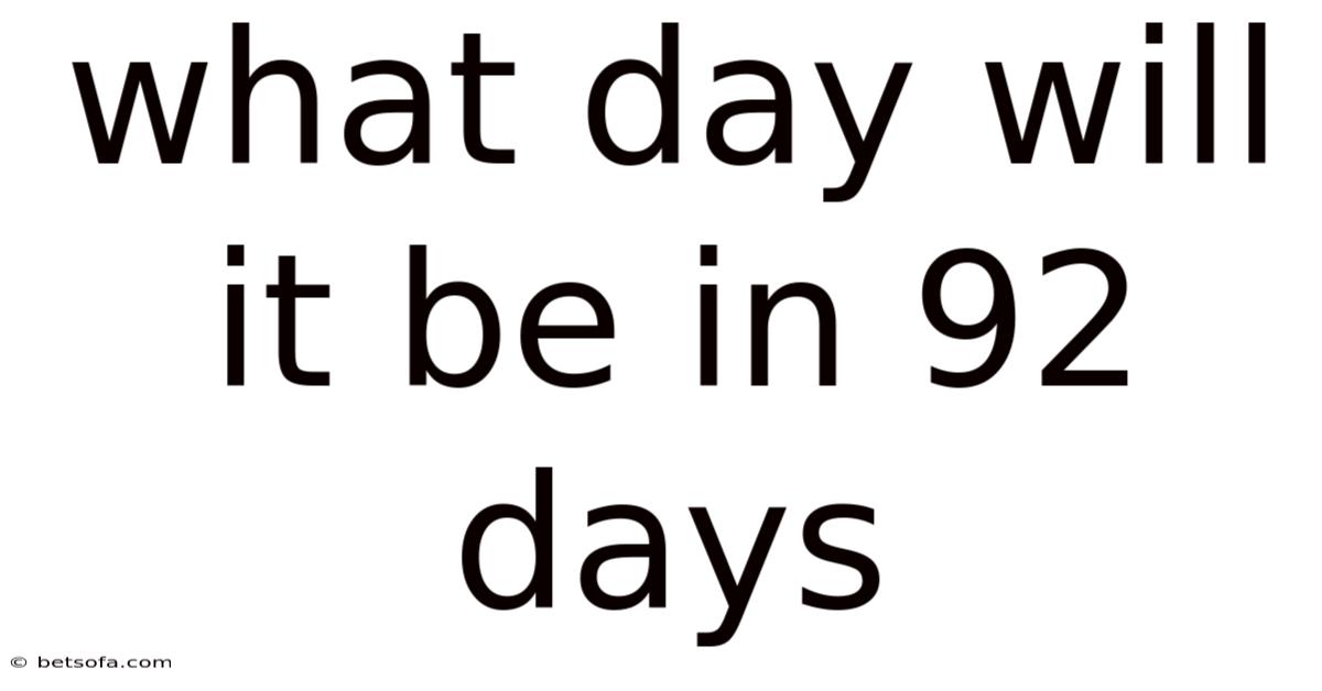 To illustrate, consider the process of determining the day of the week for a given date. Basically, 92 days from Tuesday will be a Wednesday. Also, this involves calculating the total number of days elapsed since a known reference point and then applying modular arithmetic to find the remainder when divided by 7. Take this: if today is a Tuesday and you wish to know the day 92 days from now, you would calculate 92 modulo 7, which equals 1. On the flip side, this calculation assumes a consistent 7-day week and does not account for variations in month lengths or leap years, which must be considered for precise results But it adds up..