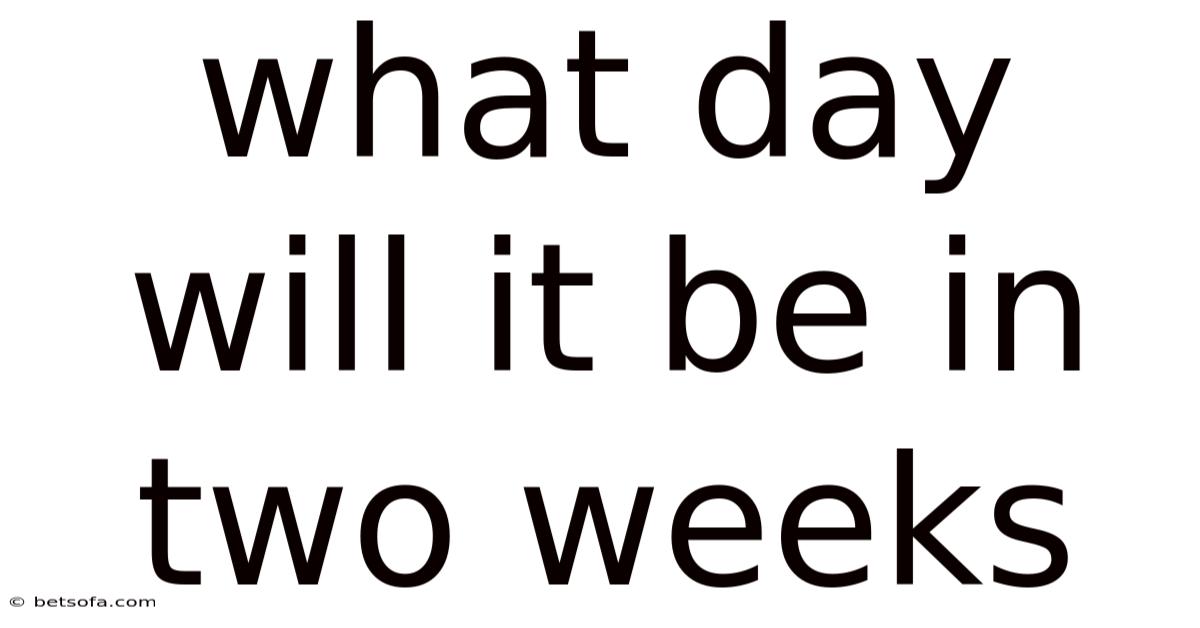 Have you ever found yourself in a situation where you needed to know a future date with precision? Which means perhaps you're scheduling a follow-up appointment, planning a project deadline, counting down to an event, or simply curious about what the calendar holds two weeks from today. On the flip side, the seemingly simple question, "What day will it be in two weeks? " opens a door to fundamental concepts of timekeeping, calendar mathematics, and practical planning. At its core, this query is about date calculation—the process of determining a specific future (or past) date by adding or subtracting a defined duration from a known starting point. Mastering this basic skill empowers you to handle commitments, avoid scheduling conflicts, and manage your time with greater confidence. This article will serve as your complete guide, transforming a everyday question into a clear understanding of how our calendar system works and how you can calculate any date with accuracy.