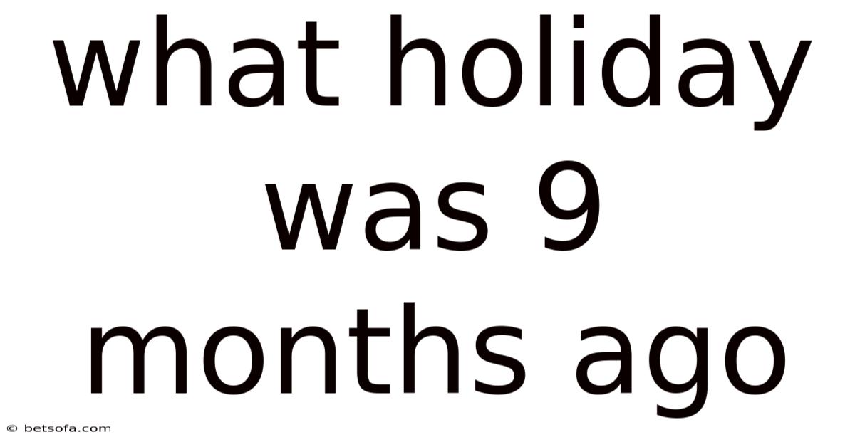 When you hear the question “what holiday was 9 months ago?That's why ”, your mind might instantly jump to a calendar, a personal diary, or a news headline from half a year earlier. The phrase is more than a quirky trivia prompt; it invites us to explore how holidays are anchored in time, how cultural calendars work, and why pinpointing a specific celebration from nine months past can be both a fun mental exercise and a useful skill for planners, educators, and history buffs alike. In this article we will unpack the idea behind locating a holiday that occurred nine months ago, walk through the steps to determine it for any given date, examine real‑world examples, and address common misunderstandings. By the end, you’ll be equipped to answer the question confidently, whether you’re prepping a social‑media post, scheduling a reunion, or simply satisfying your curiosity.