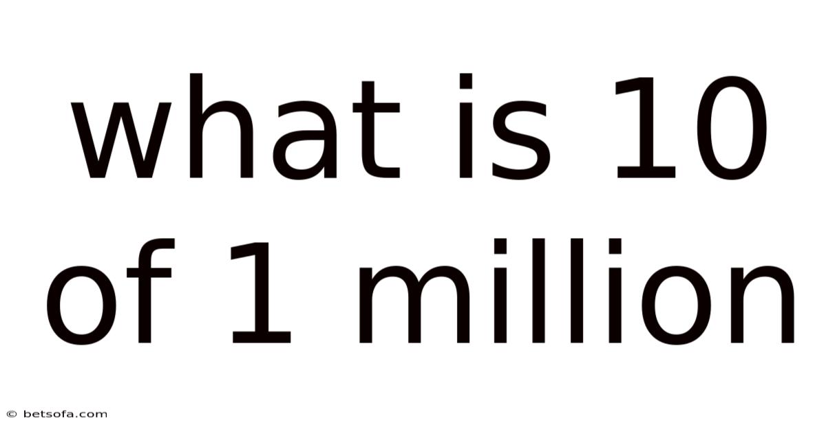 When people ask “what is 10 of 1 million?” they are usually looking for the result of taking ten percent of one million. In everyday language, percentages are a quick way to express a part of a whole, and understanding how to compute them is essential for budgeting, data analysis, shopping discounts, and many other practical situations. This article walks you through the concept, the calculation steps, real‑world illustrations, the underlying math theory, common pitfalls, and answers to frequently asked questions—all in a clear, beginner‑friendly style Worth keeping that in mind. Simple as that..