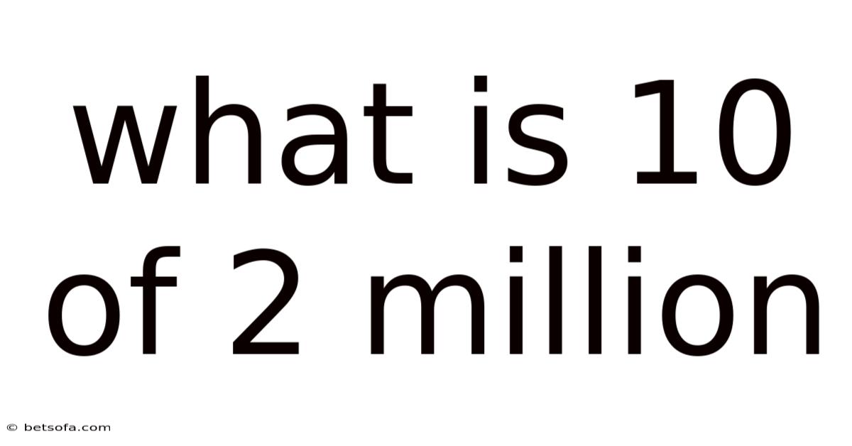 To grasp what is 10 of 2 million, one must first comprehend the foundational relationship between the numerator and denominator. At its core, the phrase "10 of 2 million" translates to a fraction where the numerator represents 10 units and the denominator signifies 2 million. This simple structure allows for straightforward mathematical manipulation, yet its practical application often demands careful consideration. Here's a good example: 2 million can be visualized as 2,000,000, making the calculation of 10% of this value a natural starting point. Percentages play a critical role here, as converting the fraction into a percentage simplifies the process of determining the proportion. A 10% of 2 million equals 200,000, but interpreting this result within context is equally vital. Understanding that 10% is a relatively small percentage relative to the total quantity helps contextualize the outcome, preventing misinterpretation. This step-by-step approach ensures that the final figure remains accurate and meaningful, reinforcing the importance of precision in mathematical reasoning.