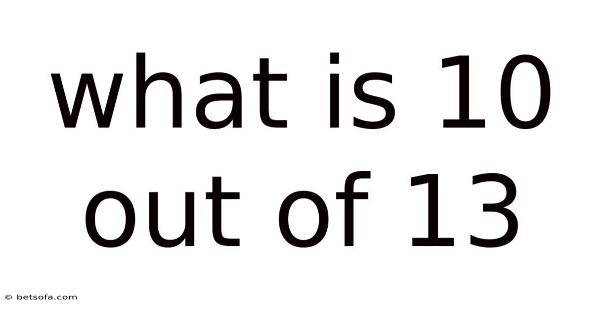 To fully understand "10 out of 13," it helps to break down the mathematical process. First, recognize that this is a fraction where the numerator (10) represents the successful or relevant outcomes, while the denominator (13) represents the total possible outcomes. To calculate the decimal equivalent, divide 10 by 13, which yields approximately 0.769. To convert this to a percentage, multiply by 100, resulting in 76.9%.