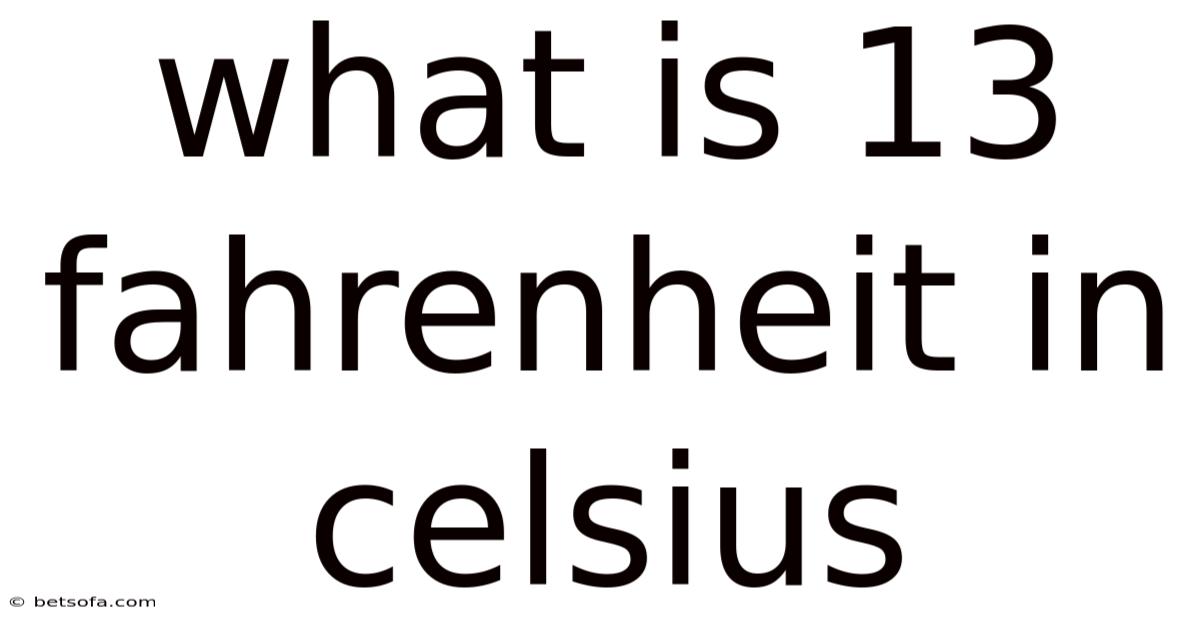 When exploring temperature conversions, one common question arises: *What is 13 degrees Fahrenheit in Celsius?That said, * This question is not just about numbers—it's about understanding how different units of measurement work together. In practice, in this article, we will delve deep into the process of converting Fahrenheit to Celsius, breaking down each step, and explaining the significance of this conversion in everyday life. Whether you're a student, a teacher, or simply curious, this thorough look will clarify how to transform Fahrenheit into Celsius and why it matters.