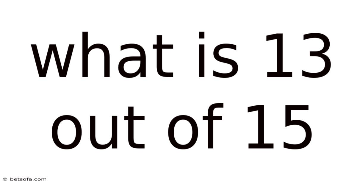 The concept of 13 out of 15 is rooted in the idea of comparing a part to a whole. To give you an idea, a percentage might be more intuitive for quick comparisons, while a fraction could be useful in mathematical calculations. In this case, 13 represents the portion of interest, and 15 is the total or maximum possible value. Each representation offers unique insights depending on the situation. Plus, 8667), or a percentage (86. This ratio can be expressed in multiple forms—such as a fraction (13/15), a decimal (approximately 0.Day to day, 67%). Understanding this multifaceted concept is essential for anyone dealing with data analysis, education, or decision-making processes.