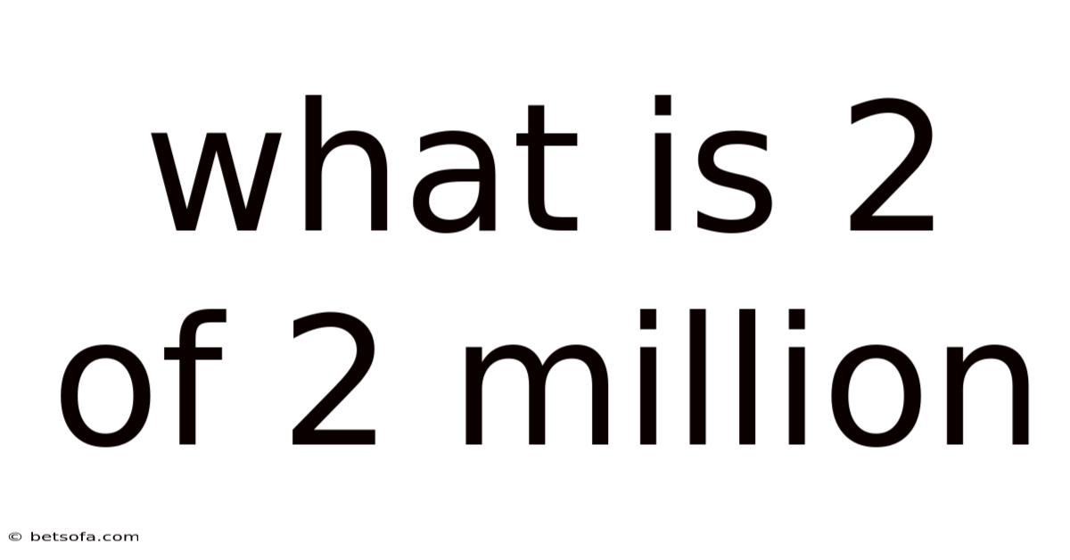 The importance of understanding "2 of 2 million" lies in its ability to simplify complex data. In real terms, by breaking down large numbers into manageable ratios, we can make sense of information that might otherwise seem overwhelming. Now, this concept is not limited to mathematics; it is a tool for critical thinking and analysis. Whether you're a student, a professional, or someone curious about numbers, grasping the meaning of "2 of 2 million" can enhance your ability to interpret data and make informed decisions.
