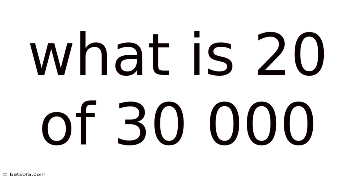 When you see a question like “what is 20 of 30 000?In everyday life, percentages help us understand discounts, interest rates, tax calculations, and statistical data. On top of that, this article explains, step by step, how to determine 20 % of 30 000, why the method works, and where the calculation shows up in real‑world scenarios. Consider this: ” it may look like a simple arithmetic problem, but it actually touches on a fundamental concept in mathematics: finding a percentage of a number. By the end, you’ll not only have the answer—6 000—but also a deeper grasp of percentages that you can apply to any similar problem.