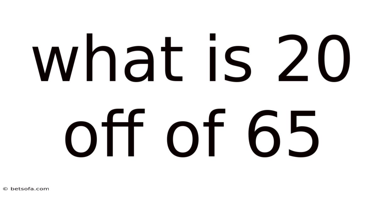 When you encounter the phrase what is 20 off of 65, you are being asked to perform a simple arithmetic operation that appears in everyday situations such as shopping discounts, budgeting, or solving math problems. In this article we will unpack the meaning behind those numbers, walk through the calculation step‑by‑step, illustrate how it shows up in real life, and explore the underlying mathematical ideas that make the concept clear even for beginners. By the end, you will not only know that 20 off of 65 equals 45, but you will also understand why that answer matters and how to avoid common pitfalls.