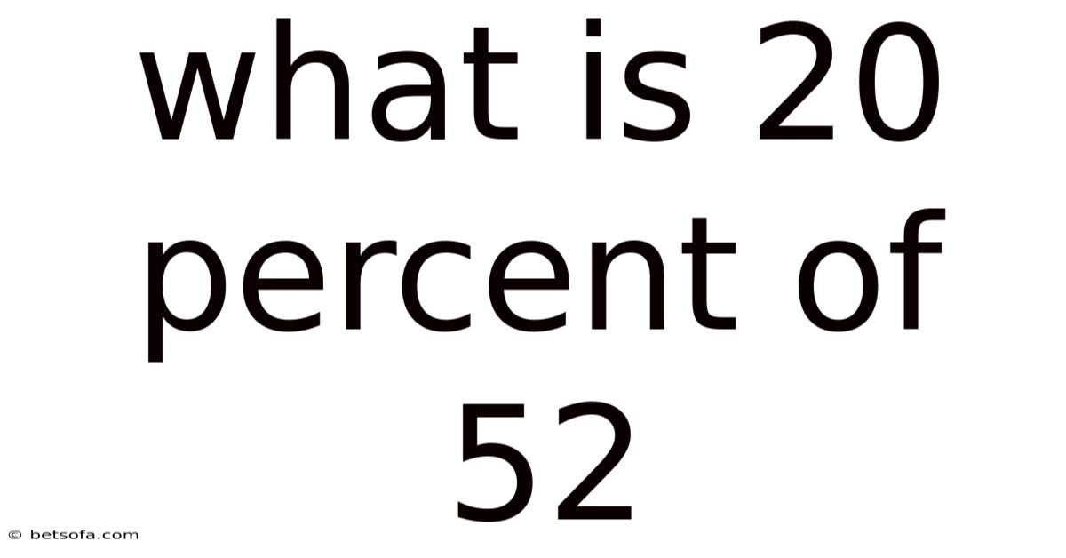 Imagine you're browsing a store, eyeing a $52 jacket marked down by 20%. On top of that, you wonder, "How much money will I actually save? Practically speaking, " Or perhaps you're splitting a $52 restaurant bill with friends and need to calculate a 20% tip. That said, in both scenarios, the question "What is 20 percent of 52? On top of that, " arises. This seemingly simple calculation is a fundamental building block of everyday numeracy, crucial for making informed financial decisions, interpreting data, and understanding proportions. Percentages are everywhere – from calculating discounts and interest rates to analyzing statistics and probabilities. Day to day, understanding precisely what 20% of 52 means unlocks the ability to deal with these common situations confidently and accurately. This article delves deep into the concept of percentages, breaking down the calculation of 20% of 52 step-by-step, exploring its significance, and addressing common pitfalls, ensuring you grasp not just the answer, but the underlying logic.