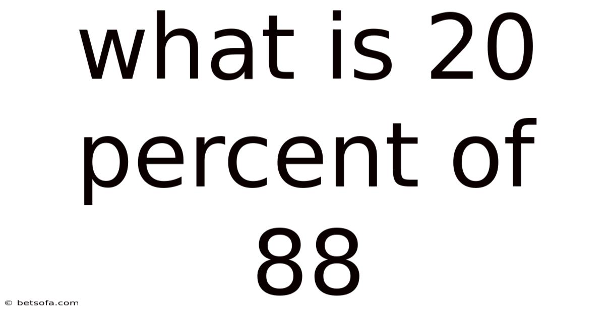 When we ask "what is 20 percent of 88," we are essentially trying to find a specific portion of a whole number. Because of that, percentages are one of the most commonly used mathematical concepts in everyday life, appearing in everything from calculating discounts during shopping to determining interest rates on loans and analyzing statistical data. The answer to this particular calculation—20 percent of 88 equals 17.Practically speaking, 6—may seem like a simple number, but understanding how we arrive at this result opens the door to mastering a wide range of mathematical applications. This full breakdown will walk you through the step-by-step process of calculating percentages, explain the underlying mathematical principles, and provide practical examples that demonstrate why this skill is so valuable in real-world scenarios.