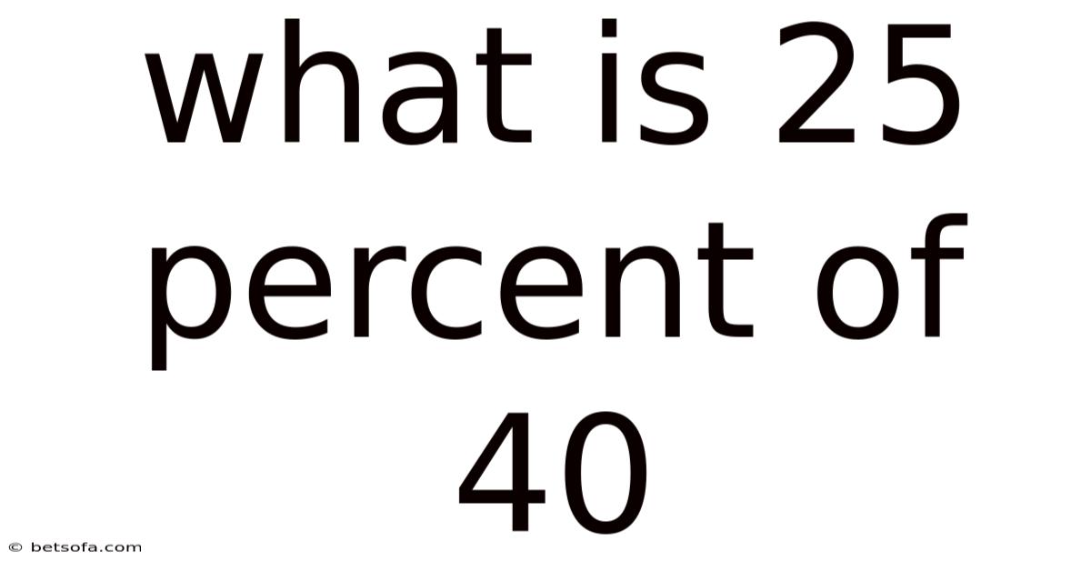 The short version: 25 % of 40 equals 10, a result that embodies the elegance of percentages: a compact, universally understood language that turns abstract ratios into actionable numbers. Mastery of this simple calculation lays the groundwork for tackling more sophisticated percentage problems—such as compound growth, probability adjustments, and statistical analyses—ensuring that you are well‑equipped for the quantitative challenges that lie ahead That's the part that actually makes a difference..