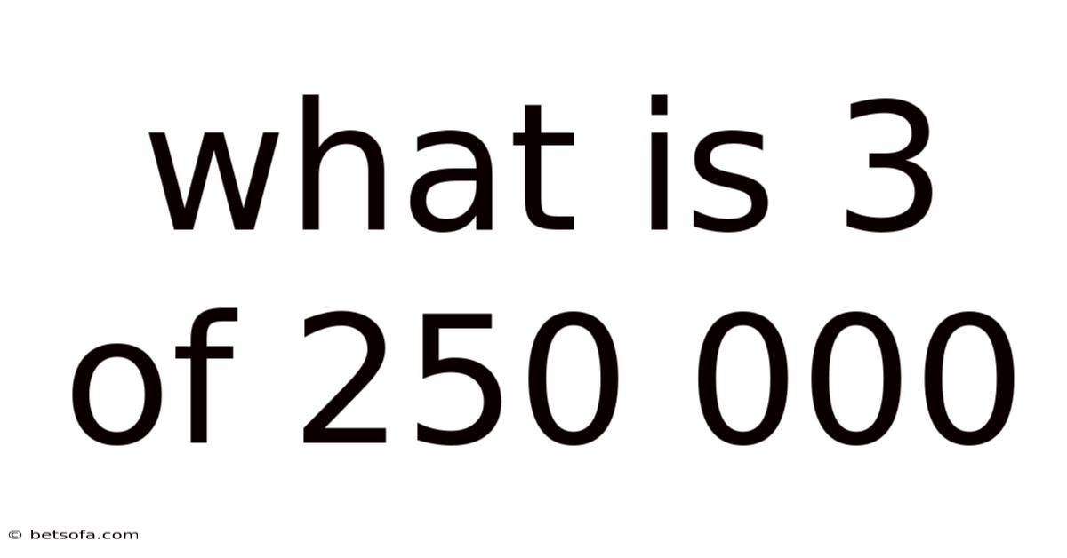 When someone asks, “What is 3 of 250,000?So for instance, it could mean 3 units out of 250,000 total units, or 3 instances within a dataset of 250,000 entries. This phrase can be interpreted in multiple ways depending on the context—whether it refers to a mathematical calculation, a statistical ratio, or a conceptual comparison. At its core, “3 of 250,000” represents a fraction, proportion, or portion of a whole. On top of that, ” they are typically seeking to understand the relationship between the number 3 and the much larger number 250,000. Understanding this concept requires breaking down the numbers, exploring their significance, and applying them to real-world scenarios Surprisingly effective..