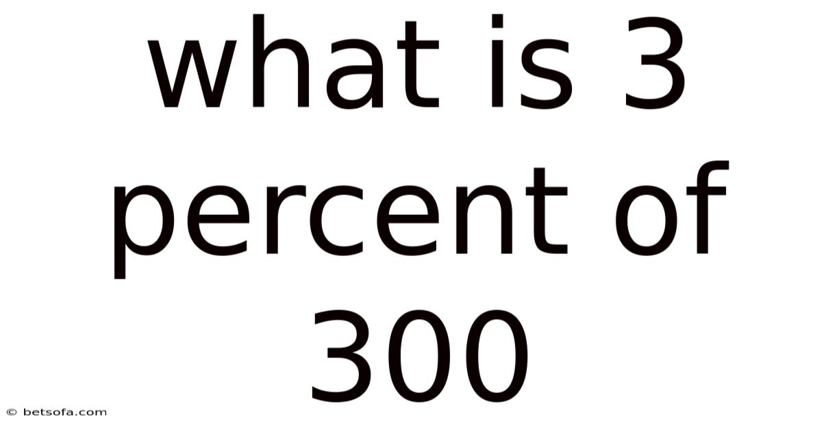 The result of 9 is not a random figure; it reflects a precise proportion. If you imagine 300 as a whole pie divided into 100 equal slices, each slice would represent 3 units (because 300 ÷ 100 = 3). Taking 3 of those slices (3 % = 3 slices) gives you 3 × 3 = 9 units. This visual analogy reinforces the idea that percentages are about dividing a whole into equal parts and then selecting a specific number of those parts That's the part that actually makes a difference..