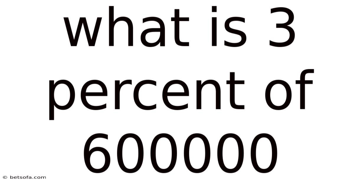detailed explanation a percentage expresses a number as a fraction of 100. the symbol “%” literally means “per hundred.” therefore, 3 percent can be written as the fraction 3⁄100 or the decimal 0.03. when we ask for 3 percent of 600,000, we are looking for the part of 600,000 that corresponds to 3 out of every 100 equal parts of that number. mathematically, this is achieved by multiplying the whole (600,000) by the decimal form of the percentage (0.03). the product gives the portion that represents the requested percentage.