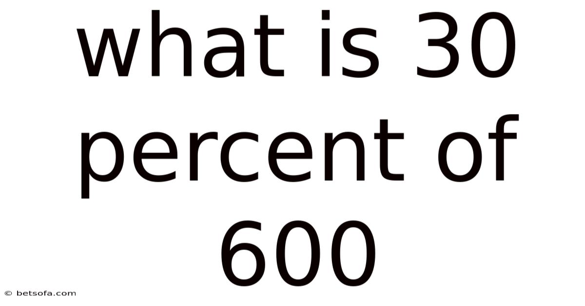 When we ask "What is 30 percent of 600?", we are asking: "What number represents 30 parts if we divide 600 into 100 equal parts?In practice, " The number 600 in this problem is our "whole" or "total" quantity. We are seeking a "part" of that whole. The operation of finding a percentage of a number is fundamentally a multiplication operation. Consider this: you are scaling the whole number (600) by the proportional rate (30% or 0. This leads to 30). This concept is the bedrock of calculating discounts, determining tax amounts, interpreting survey results, and understanding growth or decline in any quantitative field. It transforms abstract ratios into concrete, usable figures Small thing, real impact. Nothing fancy..