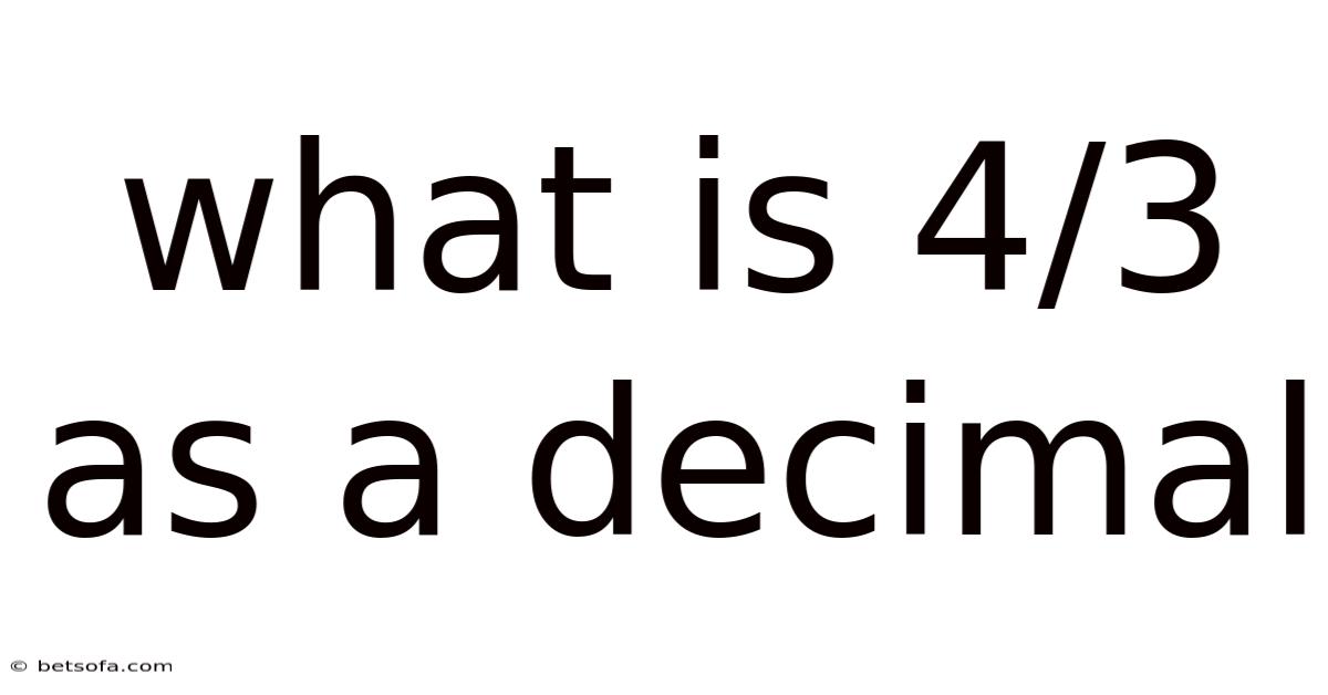 At first glance, the question "What is 4/3 as a decimal?Understanding how to convert 4/3 to its decimal form is not just about getting an answer for a homework problem; it’s about grasping the very nature of numbers, the concept of division, and the elegant (and sometimes infinite) patterns that lie beneath the surface of our daily calculations. In practice, " seems incredibly simple. Also, it’s a basic arithmetic conversion, the kind of problem you might encounter in a middle school math class. On the flip side, this seemingly minor query opens a fascinating door into the fundamental relationship between two of humanity's most important numerical systems: fractions and decimals. This article will take you on a complete journey from the basic division to the profound implications of the result, ensuring you not only know the answer but truly understand why it is what it is Less friction, more output..