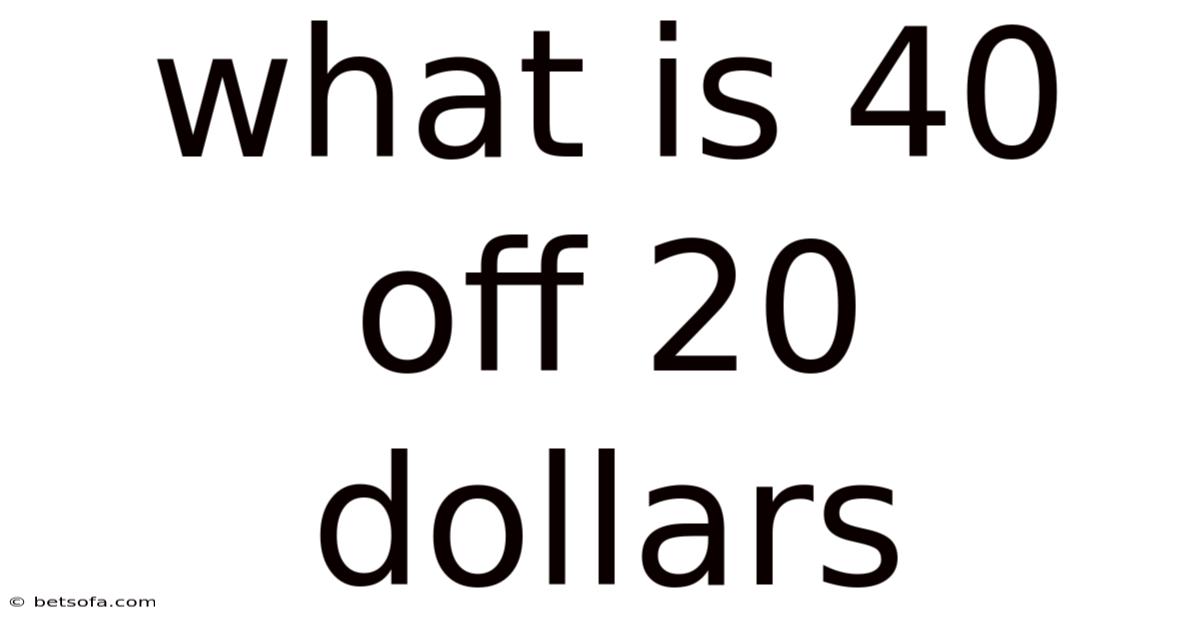 Understanding discounts and how they are expressed is crucial for making informed purchasing decisions. That said, the phrase "40 off 20 dollars" is likely a mistake or a misunderstanding, as it would result in a negative price, which is not realistic in most retail contexts. Plus, by breaking down the concept of discounts and providing real-world examples, we can better understand how to calculate final prices and avoid common mistakes. Remember to always double-check discount expressions and calculate the final price to ensure you're getting the best deal possible Easy to understand, harder to ignore..