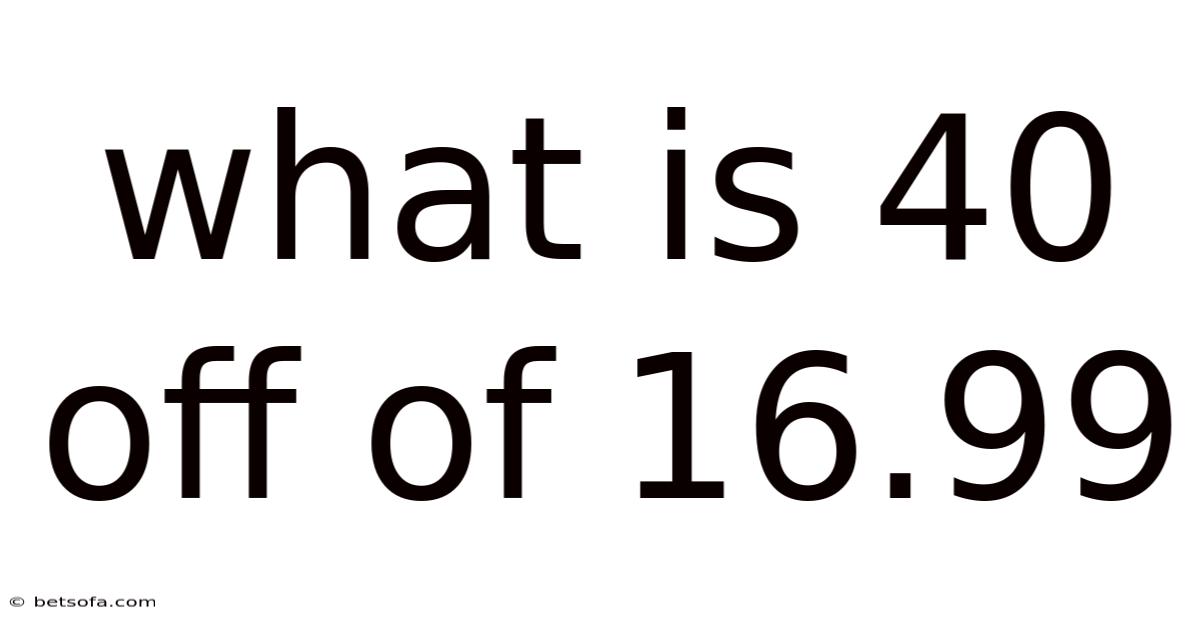 When you see a price tag that reads “40 % off $16.99”, the first instinct is to wonder how much you’ll actually pay. Think about it: this simple‑looking discount can be confusing for shoppers who aren’t comfortable with percentages or quick mental math. This leads to in this article we break down exactly what “40 % off of $16. 99” means, walk you through the calculation step‑by‑step, explore real‑world scenarios where the discount appears, and address common misconceptions that often lead to over‑ or under‑paying. By the end of the piece you’ll be able to compute the final price in seconds, understand why retailers use this type of promotion, and feel confident that you’re getting the best deal possible.