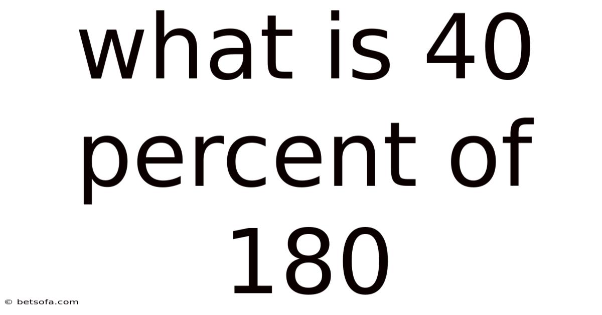 When you encounter a question like "what is 40 percent of 180," it might seem simple at first glance. This article will delve deep into the meaning of this mathematical operation, breaking it down into clear explanations, practical examples, and even some theoretical insights. Still, grasping this concept is essential for everyday decision-making, financial calculations, and academic studies. Whether you're a student, a professional, or simply curious, this guide will equip you with a thorough understanding of how to calculate and apply the 40 percent of 180.