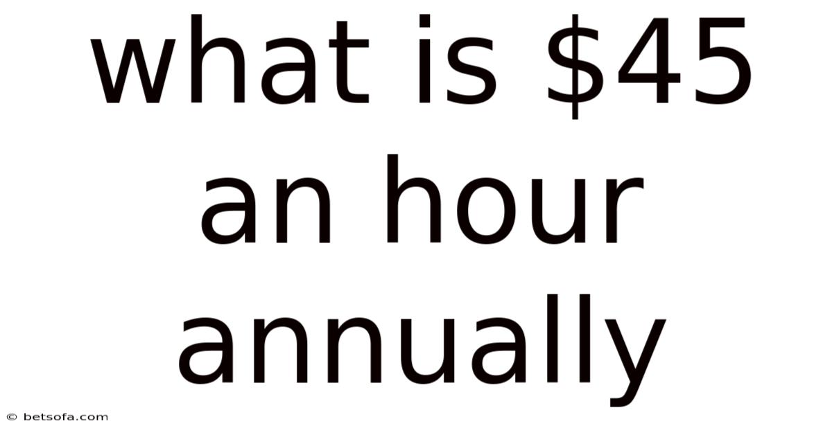 Understanding how to convert an hourly wage into an annual salary is a crucial skill for anyone navigating the job market, negotiating a raise, or planning their financial future. If you've ever wondered "what is $45 an hour annually?" you're not alone—this is one of the most common salary conversion questions people search for when evaluating job offers or comparing compensation packages. The answer depends on several factors, including how many hours you work per week and how many weeks you work per year. In this thorough look, we'll break down exactly what $45 an hour translates to annually, explore different scenarios and considerations, and help you understand what this income level means in today's economic landscape.