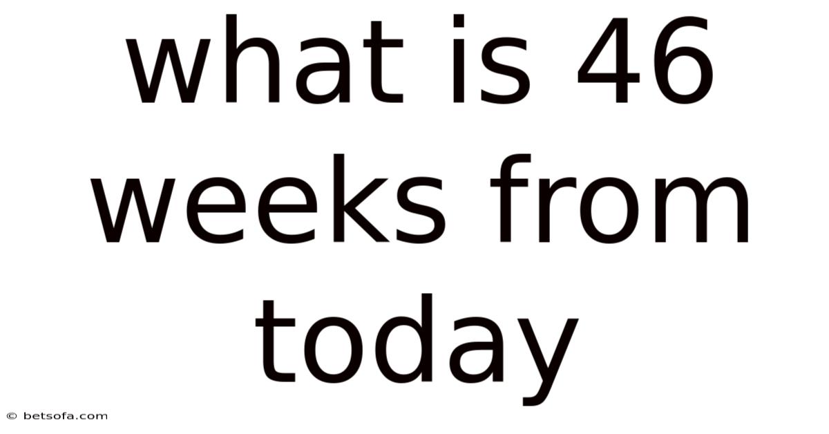 In essence, "46 weeks from today" is a powerful concept that transcends simple date arithmetic. It represents a fundamental understanding of time's passage and its relevance to our lives. While the precise date is always dependent on the current moment, the underlying principle of calculating future time periods is crucial for planning, organization, and achieving goals. From the practicalities of event scheduling to the long-term aspirations we pursue, the ability to grasp the meaning of "46 weeks from today" – and to accurately calculate it – is a valuable skill in navigating the complexities of modern life. It’s a testament to the enduring power of mathematics in shaping our understanding of the world and our place within it.
