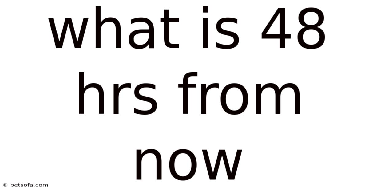 When we talk about “48 hrs from now,” we refer to a moment that is exactly 48 hours later than the current time of day. Here's one way to look at it: if the current time is 3:00 PM on Monday, 48 hrs from now would be 3:00 PM on Wednesday. The calculation is straightforward: add 48 hours to the present timestamp, preserving the minute and second components But it adds up..