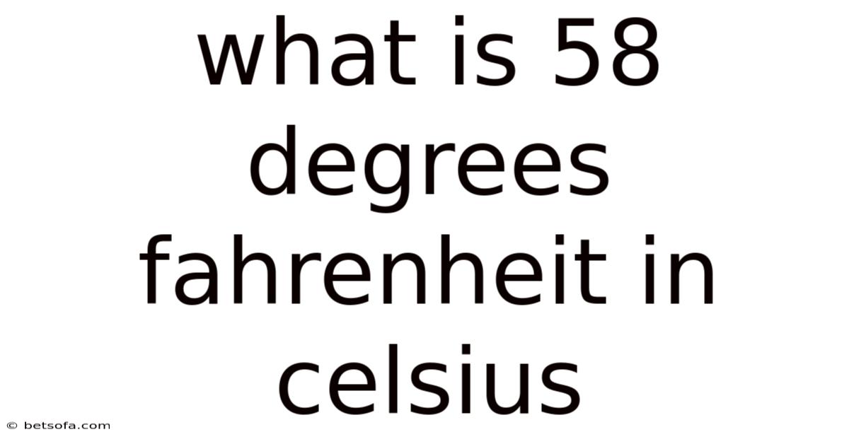 Q: Is there a quick way to estimate the conversion without using the formula? A: Yes, a rough estimate can be made by subtracting 30 from the Fahrenheit temperature and then dividing by 2. For 58 degrees Fahrenheit, this would give (58 - 30) / 2 = 14 degrees Celsius, which is close to the actual value of 14.44 degrees Celsius.