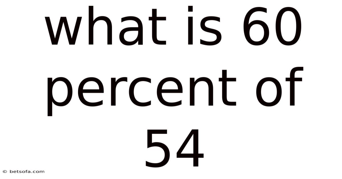 The calculation of 60 percent of 54 is a direct application of this principle. To find 60% of 54, you multiply 54 by 0.60. This process involves understanding that percentages are inherently tied to the number 100. When you calculate a percentage of a number, you are essentially finding a part of that number based on the proportion represented by the percentage. To give you an idea, if you have 54 apples and you want to know what 60% of them is, you are determining how many apples correspond to 60 out of every 100 apples Not complicated — just consistent..