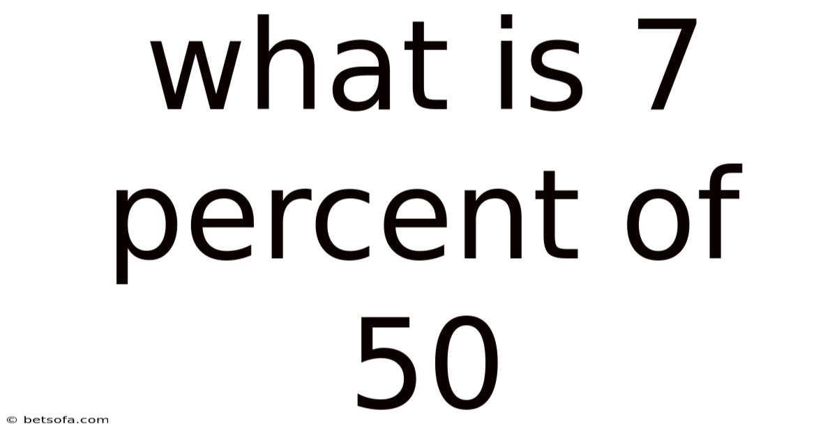 Calculating 7 percent of 50 can be approached through several methods, each leading to the same result. 5. On the flip side, 07 × 50 = 3. Day to day, next, we multiply this decimal by 50: 0. Which means, 7 percent of 50 is 3.07. And first, we convert 7 percent to its decimal form by dividing 7 by 100, which gives us 0. The most straightforward method involves converting the percentage to a decimal and then multiplying by the whole number. 5 Easy to understand, harder to ignore..