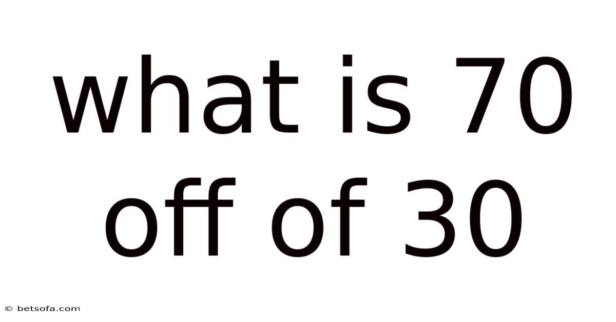 Before diving into the specific calculation, it — worth paying attention to. But it allows us to compare different quantities or to express a part of a whole in a standardized way. When we say "70 off," we are essentially saying "reduce by 70 percent." In mathematical terms, "of" translates to multiplication, and "off" translates to subtraction. So, the phrase "70 off of 30" translates to the equation: 30 - (70% × 30). A percentage is a way of expressing a number as a fraction of 100. The key to solving this is recognizing that 70% must first be converted from a percentage into a decimal format to be used in arithmetic operations That's the part that actually makes a difference..