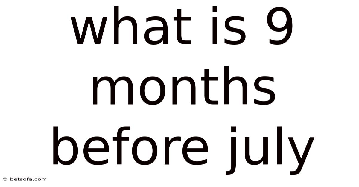 Imagine tryingto pinpoint a date that sits nine months before July—a simple question that quickly spirals into a mini‑lesson on calendars, time‑keeping, and the rhythm of the year. In this article we’ll unpack exactly what is 9 months before july, explore why the answer matters, and walk through the logical steps that lead to the solution. By the end, you’ll not only know the resulting month but also feel confident applying the same reasoning to any month‑based calculation. Think of this as a compact guide that could serve as a quick reference for students, teachers, or anyone who enjoys a good date‑puzzle Surprisingly effective..