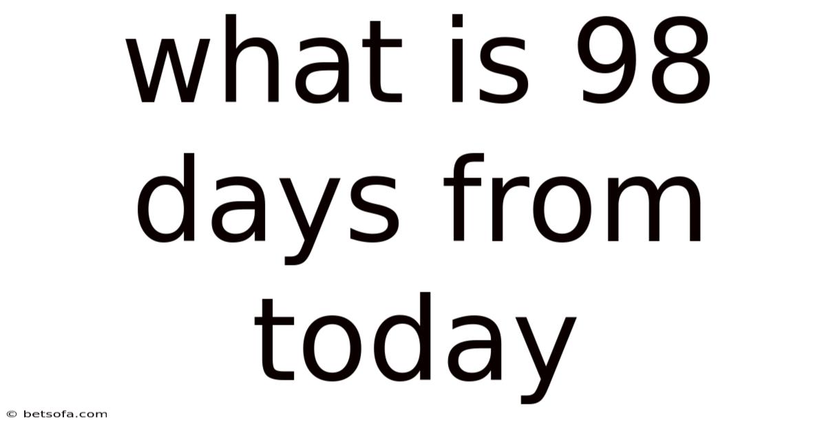 In the long run, the seemingly simple calculation of "98 days from today" reveals a fascinating interplay of mathematical principles and calendar complexities. In real terms, as we’ve explored, a correct understanding transcends a rote calculation and involves appreciating the underlying modular arithmetic and the crucial impact of leap years. On top of that, this isn't merely a computational exercise; it's a microcosm of how we manage time and plan for the future. By consciously applying these principles and avoiding common pitfalls, we equip ourselves with a powerful tool for effective scheduling, goal setting, and informed decision-making, whether in the realm of professional projects, personal aspirations, or legal obligations. The ability to accurately estimate time intervals fosters a sense of control and reduces the likelihood of unforeseen delays or missed opportunities. So, investing a little time in understanding this fundamental concept yields significant dividends in managing our lives and achieving our objectives with greater precision and confidence.