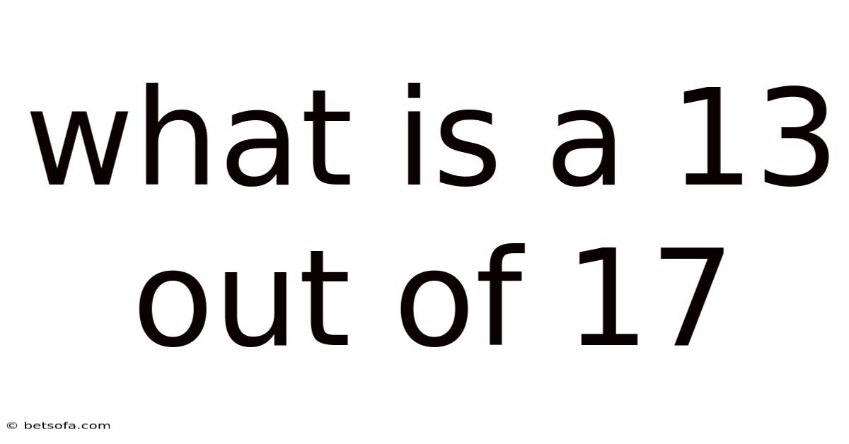 A 13 out of 17 score is a fraction that can be interpreted in various ways depending on the context. Whether it's used in academic grading, performance evaluations, or surveys, understanding what this score means requires considering the total possible points and the standards being used for evaluation. Day to day, by converting the fraction to a percentage, you can gain a clearer understanding of the score's significance. So remember that while a 13 out of 17 might not be the highest possible score, it can still indicate a satisfactory level of performance, especially if the task is challenging. Always consider the context and the specific criteria when interpreting this score.