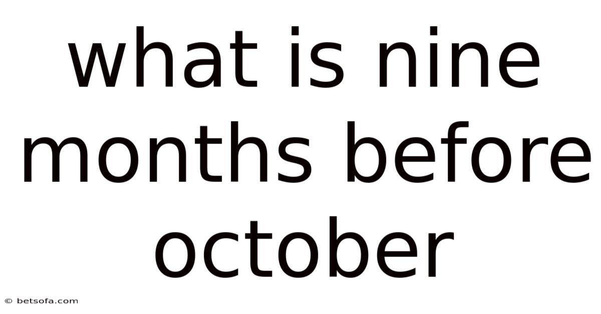 When someone asks "what is nine months before October," the answer is January. Still, this straightforward calculation is rooted in the structure of the Gregorian calendar, where months are sequentially numbered from January (1) through December (12). Understanding how to determine dates that fall a specific number of months before or after a given month is a valuable skill that applies to various real-world situations, from calculating pregnancy due dates to planning events, from determining financial deadlines to scheduling project milestones. In practice, while the calculation may seem simple at first glance, there are several nuances and practical applications worth exploring to ensure complete understanding. This article will provide a thorough explanation of how to determine what falls nine months before October, along with relevant context, examples, and frequently asked questions that will help solidify this knowledge.
