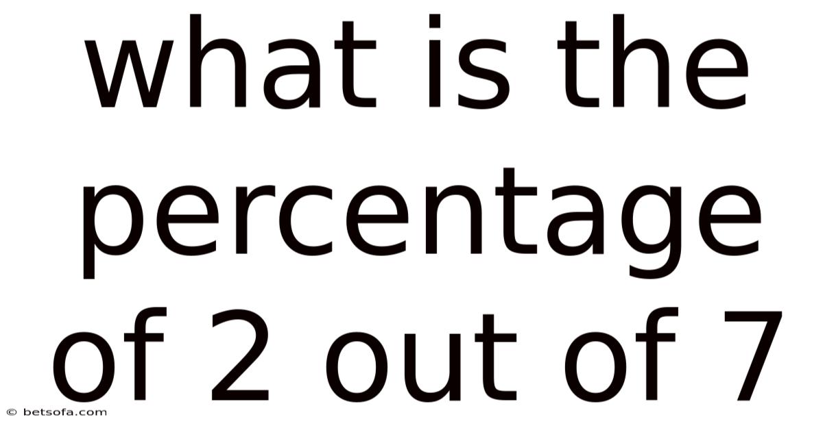 In our daily lives, we constantly encounter situations requiring us to understand proportions and relative values. Which means whether evaluating test scores, calculating discounts, analyzing sports statistics, or interpreting survey results, the concept of expressing a part of a whole as a percentage is fundamental. Even so, one specific question that often arises is: "What is the percentage of 2 out of 7? " This seemingly simple query touches upon the core mathematical operation of converting a fraction into a percentage, a skill essential for making sense of the world around us. This article delves deeply into the meaning, calculation, and significance of determining the percentage represented by 2 out of 7, providing a thorough understanding that goes far beyond a single numerical answer That's the part that actually makes a difference. Surprisingly effective..