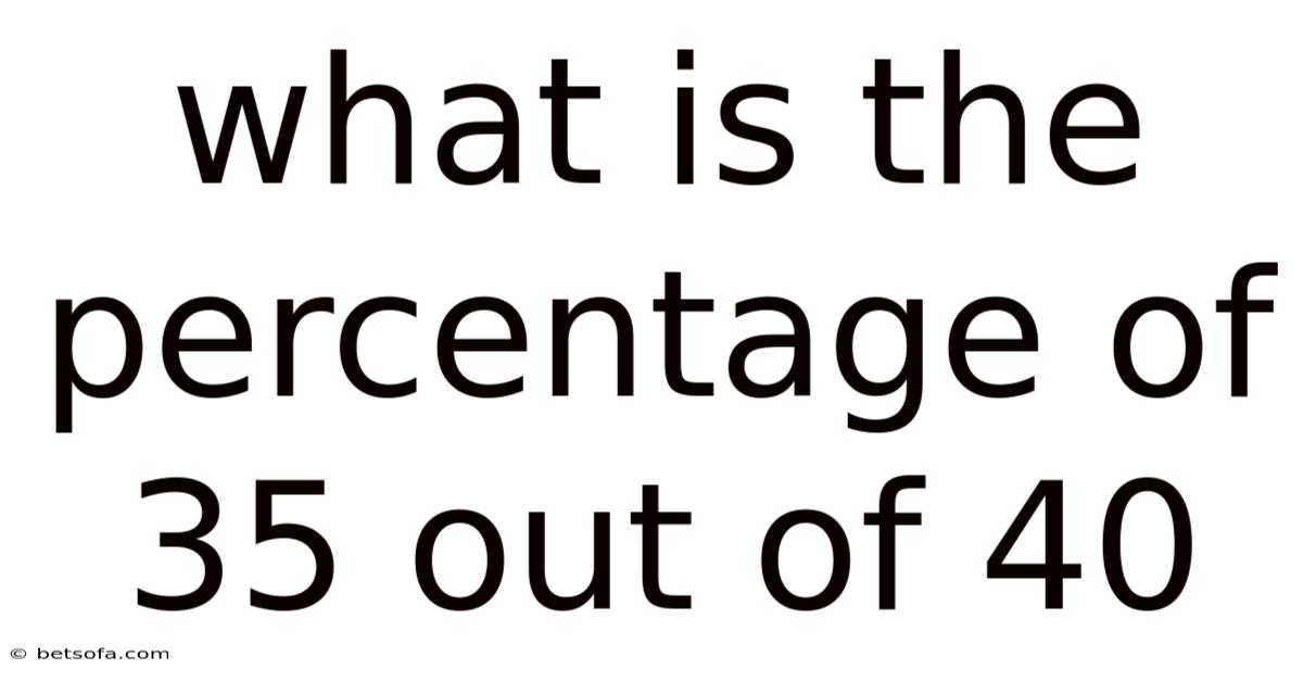 The percentage of 35 out of 40 is a straightforward calculation, but its implications extend far beyond a simple arithmetic problem. It helps us grasp how a specific value compares to a larger group, making it a foundational concept in data analysis. In this article, we will delve deep into this topic, exploring its meaning, calculation, real-world applications, and common misunderstandings. By the end of this discussion, you will have a clear understanding of what this percentage signifies and why it matters.