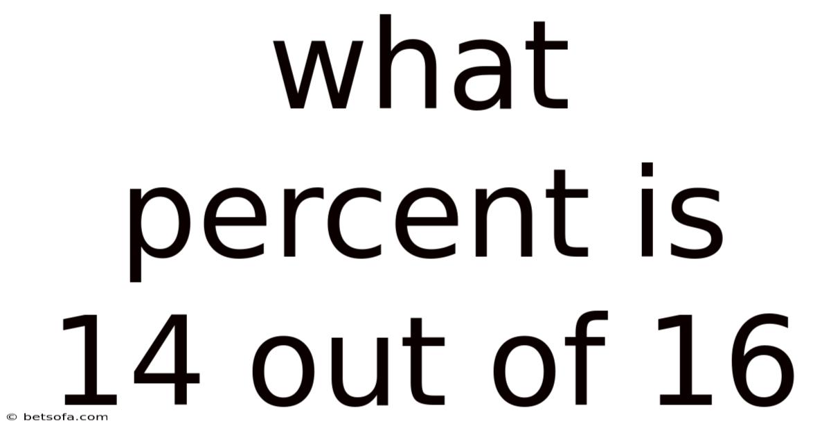 A percentage represents a part per hundred—literally, “per cent,” from the Latin per centum. * The answer lies in converting the fraction 14/16 into a percentage. ”*, we’re asking: *If 16 were the whole (100%), what portion of that whole does 14 represent?In real terms, this process isn’t just about plugging numbers into a formula; it’s about understanding proportion, equivalence, and scaling. So, when we ask *“What percent is 14 out of 16?Let’s walk through the calculation step by step, then explore why it matters Not complicated — just consistent. Took long enough..