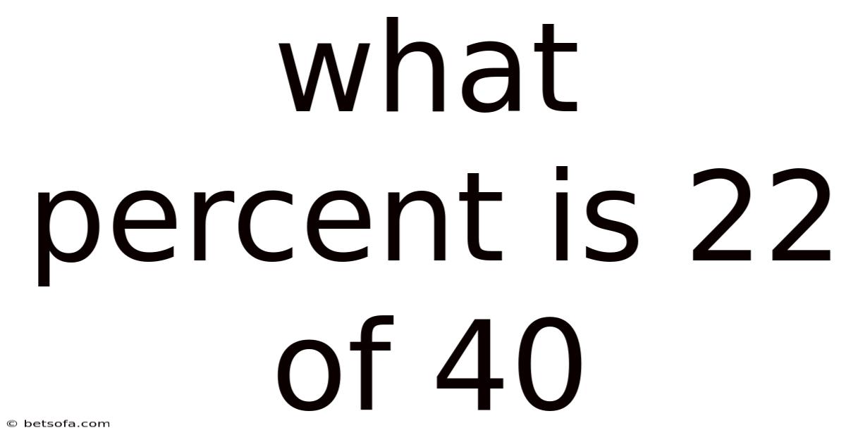 When you hear a question like “what percent is 22 of 40?Consider this: in this article we will unpack exactly what “percent” means, walk through the calculation step‑by‑step, explore why the answer matters in everyday life, and address common pitfalls that many learners encounter. That's why percentages are a universal way of comparing quantities, whether you are looking at a discount in a store, a test score, or a statistical result. ”, you are being asked to express the relationship between two numbers as a percentage. By the end, you will not only know that 22 is 55 % of 40, but you will also understand the underlying concepts, be able to perform similar conversions instantly, and avoid typical mistakes.