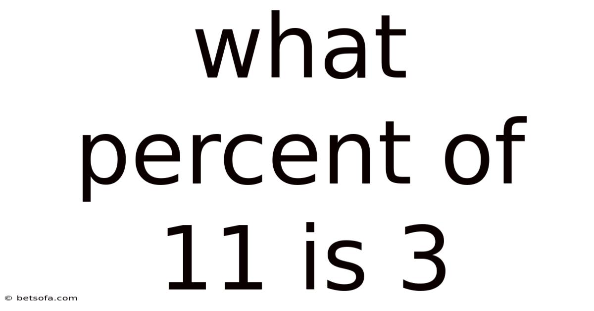 Let’s clarify the question. If the question is interpreted as “What percentage of 11 is equal to 3?” then the answer is indeed approximately 27.27%.