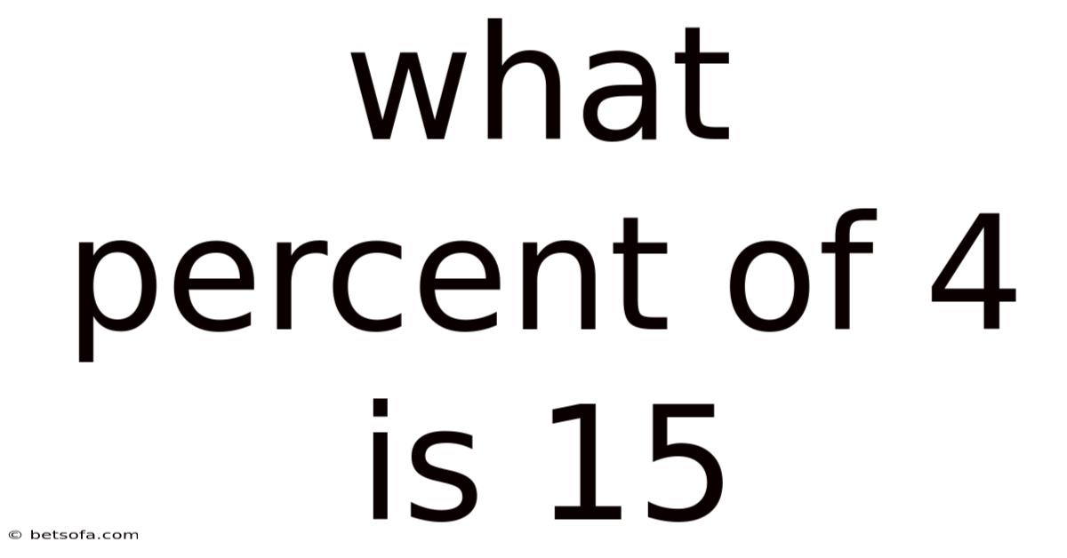Q: What does it mean when we say 15 is 375% of 4? A: It means that 15 is 3.75 times larger than 4, or that 15 contains 4 exactly 3.75 times.