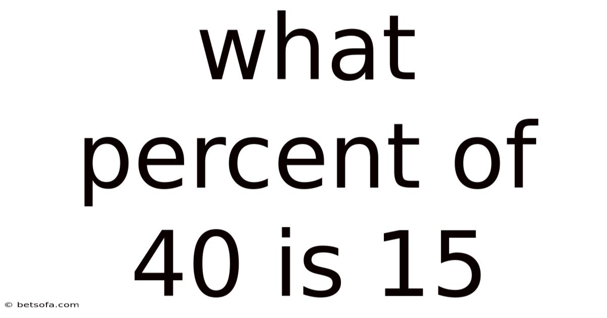 In our daily lives, we constantly encounter percentages - from calculating discounts at the store to understanding statistics in the news. And one common type of percentage problem asks "what percent of one number is another? Even so, understanding how to calculate percentages is not just about solving math problems; it's about developing a crucial skill for financial literacy, data interpretation, and informed decision-making. On the flip side, " - such as determining what percent of 40 is 15. This seemingly simple question actually represents a fundamental mathematical concept with wide-ranging applications. In this complete walkthrough, we'll explore the concept of percentage calculations in depth, breaking down the specific problem of finding what percent 15 is of 40, and examining the broader implications of percentage understanding in various contexts Simple, but easy to overlook..