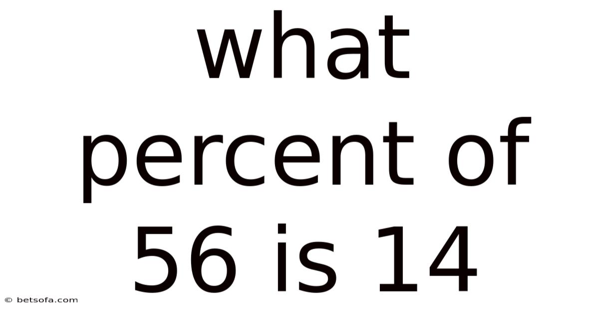 Percentages are an omnipresent concept, woven into the fabric of our daily calculations, financial decisions, scientific analyses, and even casual conversations. Here's the thing — this article delves deep into the specific question: **what percent of 56 is 14? Even so, understanding how to determine what percentage one number represents of another is a fundamental mathematical skill with profound practical applications. ** By exploring the underlying principles, breaking down the calculation process, examining real-world contexts, and addressing common pitfalls, we aim to provide a complete and satisfying understanding of this essential mathematical operation.